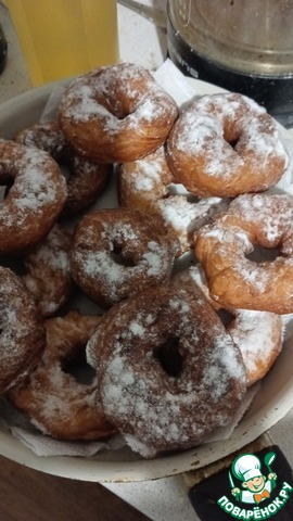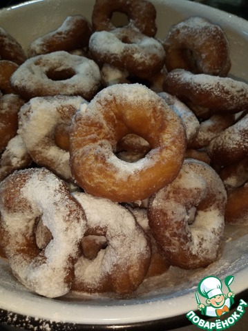 "Захотелось что-нибудь съесть – что-нибудь хорошее, из детства. Отошедший навсегда в прошлое бублик. Или даже вредный пончик с сахарной пудрой. В Ленинграде он назывался пышкой. На Большом проспекте Петроградской стороны была пышечная, и, возвращаясь из школы, мы останавливались и смотрели через витрину, как пышки плывут на конвейере, потом смахиваются металлической лопаткой в чан с кипящим маслом и выплывают с другой стороны уже румяными, пухлыми, такими, перед которыми ну невозможно устоять. А сахарной пудрой их присыплет продавец уже в кульке. Он сыплет, а ты мысленно подсказываешь ему: больше, больше сыпь… " Натолкнувшись на эти строки у Татьяны Толстой, очень захотелось тех самых Ленинградских пышек из пышечных, рецепт найден в изложении Анны Калмыковой. И как утверждает она, рецепт максимально приближен, вкус тот самый! А, значит, надо пробовать!