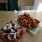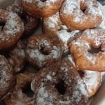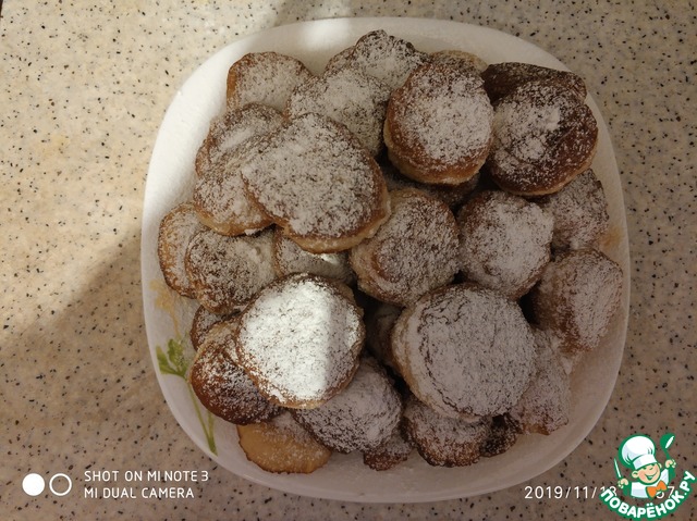 Готовые пышки откинуть на бумажное полотенце. После посыпать сахарной пудрой и подавать к столу.
