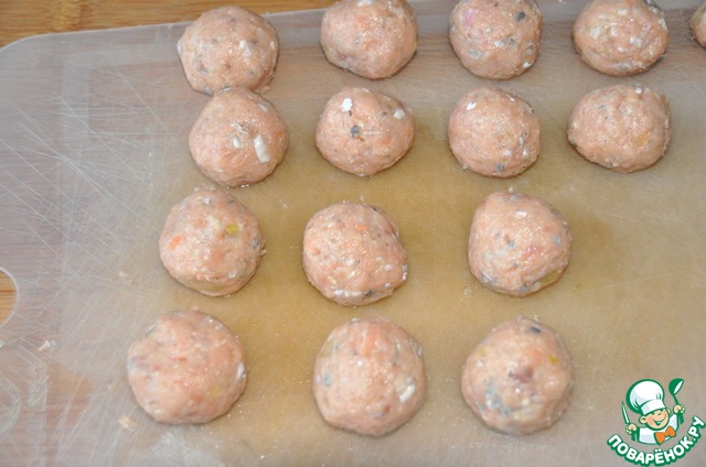 Тем временем из фарша делаем фрикадельки размером с грецкий орех.