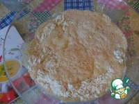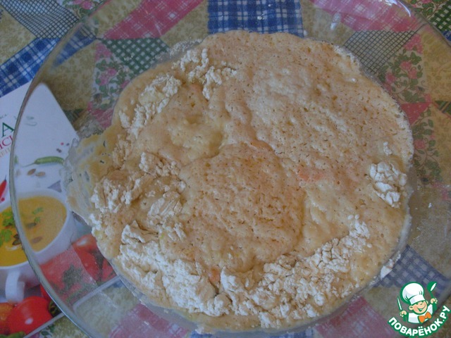Вот так выглядит наша миска через час. Сюда добавим соду 1/2 ч. л и разрыхлитель столько же. Вымешать тесто, которое получится чуть липким. Оставить на 10 минут под полотенцем. |