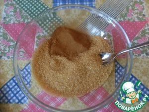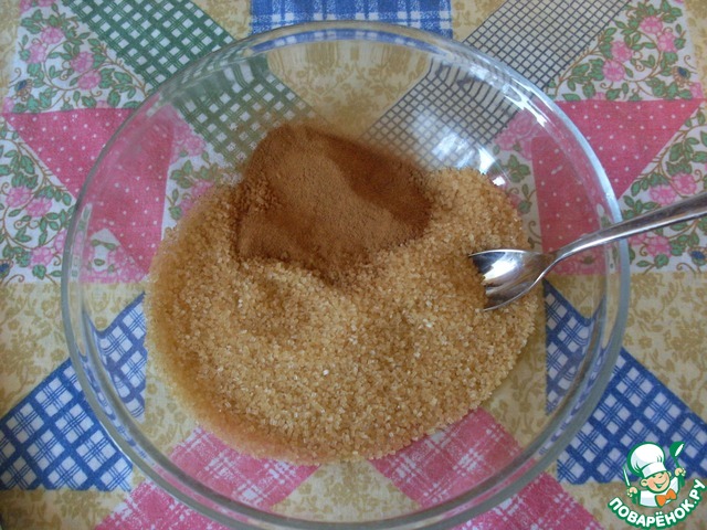 А пока для начинки смешать сахар (у меня коричневый) и корицу. |