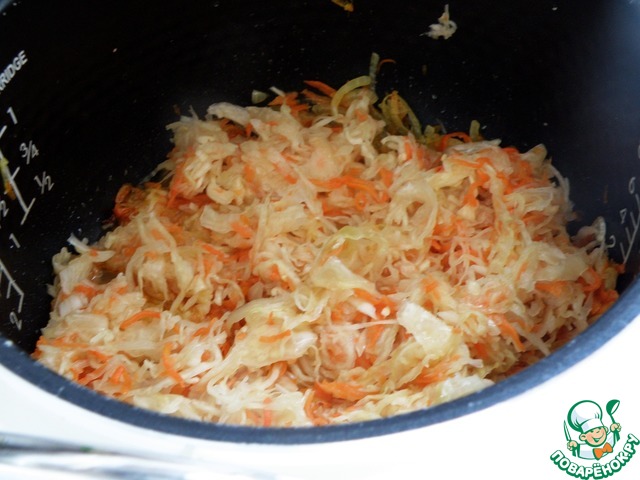 Добавить квашеную капусту. Как говорила выше, я ее не промываю, а лишь отжимаю несильно от рассола. Тушить на режиме Жарка минут 7-8, до появления характерного запаха подтушенной капусты. Картофель в уральские щи я не кладу.