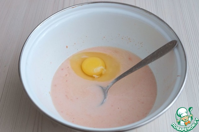 В молочно-дрожжевую смесь добавить яйцо (1 шт.), добавить соль (1/2 ч. ложки)