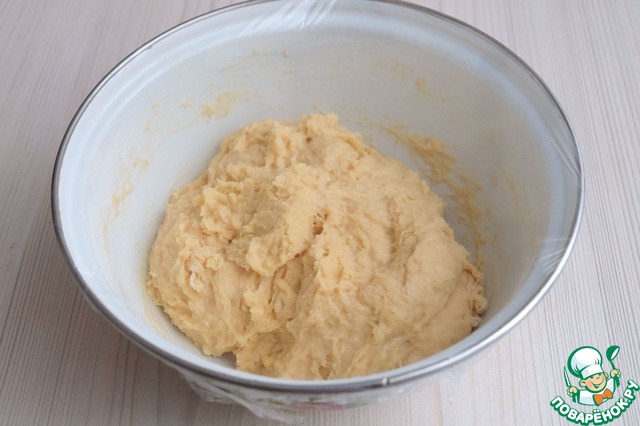 Замесить тесто. Емкость с тестом накрыть пищевой пленкой или полотенцем и ставить для подъема. После первого подъема тесто обмять и поставить подниматься вторично. Затем можно приступить к разделке булочек.