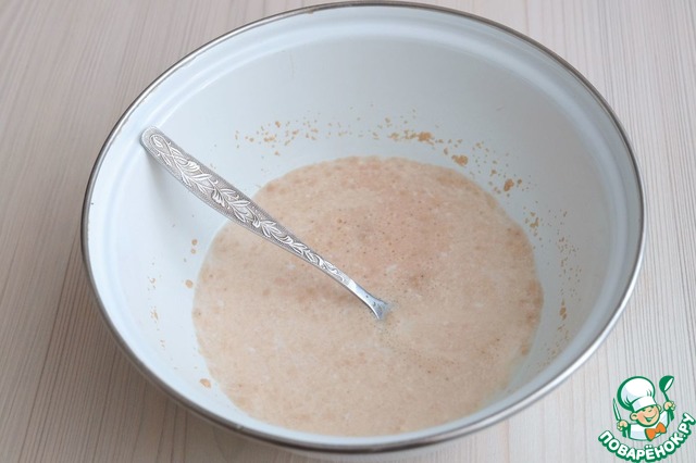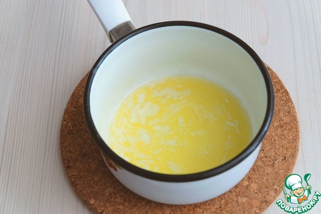 Сливочное масло (30 гр) расплавить, остудить до комнатной температуры, затем добавить в молочно-дрожжевую смесь.