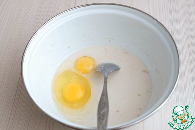 Добавить 1 яйцо и 1 яичный желток, смесь взбить.