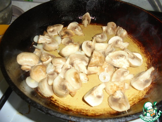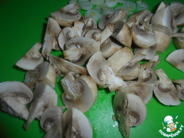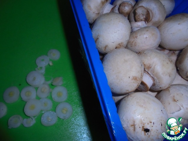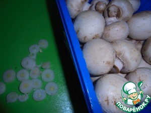 • Грибы вымыть, обсушить. Стебель лука-порея нарезать кружочками.
