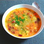 Приятный густой суп. Согревающий и обволакивающий бульон. Пряный аромат колбасок. То, что нужно после прогулки на свежем воздухе.