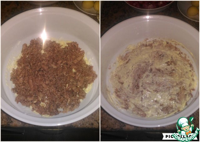 Рыбные консервы размять вилкой прямо в банке. Надо смотреть, чтоб жидкости было не очень много иначе салат поплывет. выложить слой, промазать майонезом.