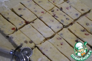 Когда тесто готово, раскатать его в пласт толщиной около 1 см на посыпанном мукой столе. Нарезать прямоугольниками ок. 3 х 10 см.