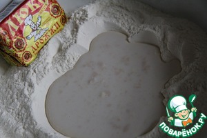 В молоке развести дрожжи с 1 ст. л. муки, 1 ч. л. сахара.