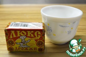 В теплом молоке (25мл) размешать сахар и раскрошить дрожжи. Размешать и оставить на 15 минут в теплое место для подъёма.