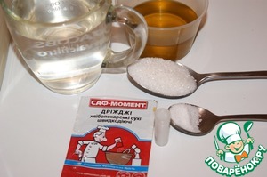 Продукты необходимые для приготовления теста лучше отмерять и взвесить заранее. К сожалению в кадр не вошли мука и лимон.