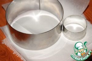 Нам понадобятся вырубки 10 и 4 см в диаметре и нарезанные листочки пекарской бумаги. Если нет вырубок, используйте стаканы или салатники подходящего размера.