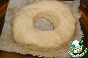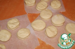 Поместить пончики на листочки бумаги и поставить на расстойку накрыв полотенцем. Пончики увеличиваются в объеме больше чем в два раза.