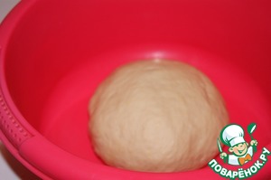 Слегка присыпать стол мукой и хорошо вымесить тесто, оно должно быть мягким и эластичным. Поместить тесто в миску, верх затянуть пищевой пленкой и отправить в холодильник на 1, 5 часа. Это холодный способ приготовления дрожжевого теста. С таким тестом легко работать и при разделке не требуется добавлять большого количества муки. Это тесто можно заморозить, а значит приготовить впрок и в любое время порадовать своих близких свежей выпечкой.