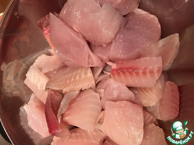 Сначала подготовим филе рыбы (у меня в этот раз тилапия, но может быть любая белая рыба не яркого вкуса: треска, судак и т. п.) и филе индейки (может быть и курицы)