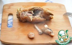 Бульон процедите, овощи и специи удалите, снимите со свиной ножки мясо