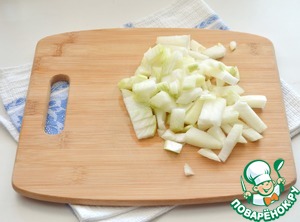 Овощи в боб гуляш режут крупно. Нарежьте репчатый лук