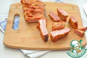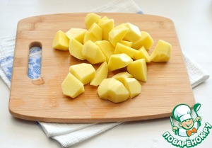 Нарежьте кусочками свиное мясо. Можно брать чистую мякоть или мясо с небольшими хрящиками (как у меня)