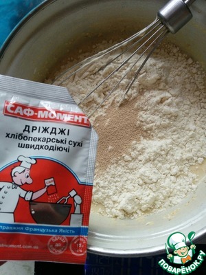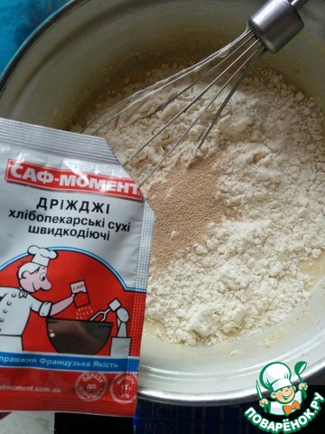После добавляем пшеничную муку и сухие дрожжи "Саф-момент".