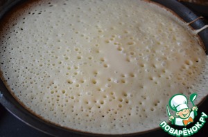 Влить оставшееся молоко, размешать и еще на 30 минут под влажное полотенце.