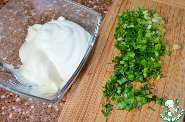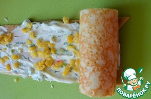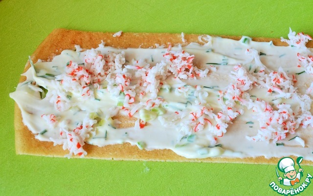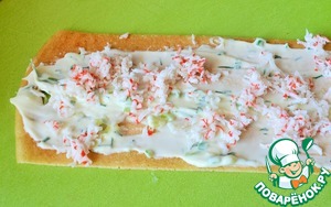 покрошить 1 ст. л. крабовых палочек. Скрутить плотно. -