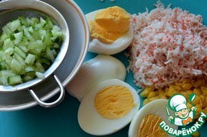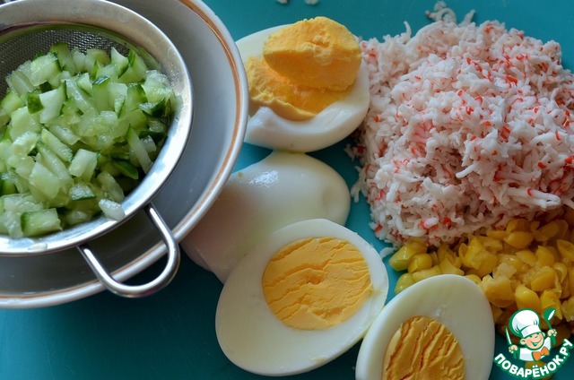 вновь с палочками, кукурузой, огурцом и яйцом.