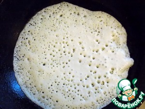 Теперь соединить обе массы и дать постоять 10 мин. Теперь можно выпекать блинчики на горячей смазанной сковороде.