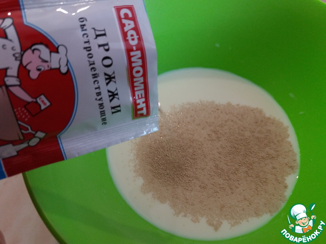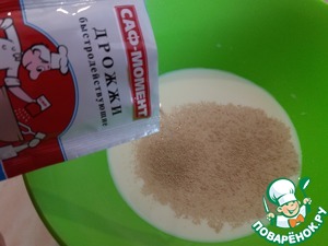 В 1 стакане молока растворить дрожжи и оставить на 20 минут