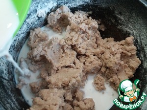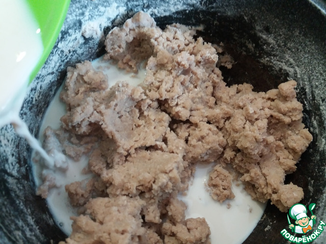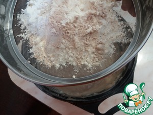 Муку: просеиваем 1/2 стакана пшеничной муки и 1/2 стакана гречневой муки