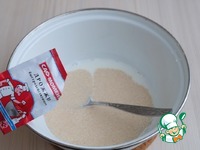 Молоко (200 мл.) подогреть, добавить 1 ст. ложку сахара, растворить в теплом молоке сухие быстродействующие дрожжи "Саф-момент".