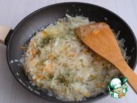 В тушеную капусту добавить пряную сушеную зелень (укроп петрушка), при необходимости добавить соль. Хочу обратить внимание, что лук я не добавляю в начинку. Если вы отдаете предпочтение начинке с добавлением лука, вы можете смело его добавить. |