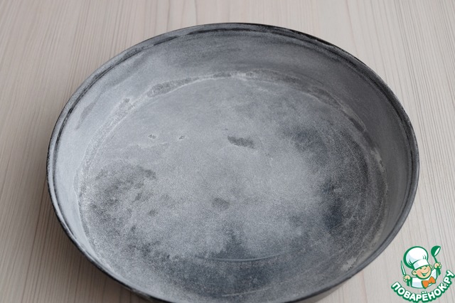 Форму для выпекания смазать тонким слоем сливочного масла, присыпать мукой, слегка повращать, у нас получиться "французская рубашка". Остатки муки высыпать. |