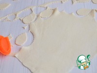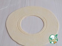 Раскатать пласт теста, вырезать середину. |
