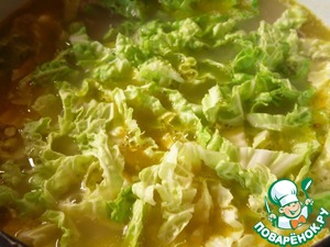 Добавить нашинкованную китайскую капусту, варить еще 5 минут.