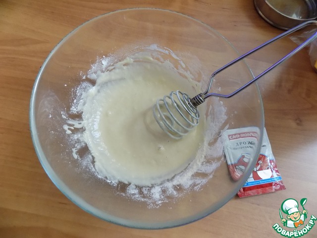Сахар 1 ст л и дрожжи 1 ч л быстрые размешиваем в тёплой воде.