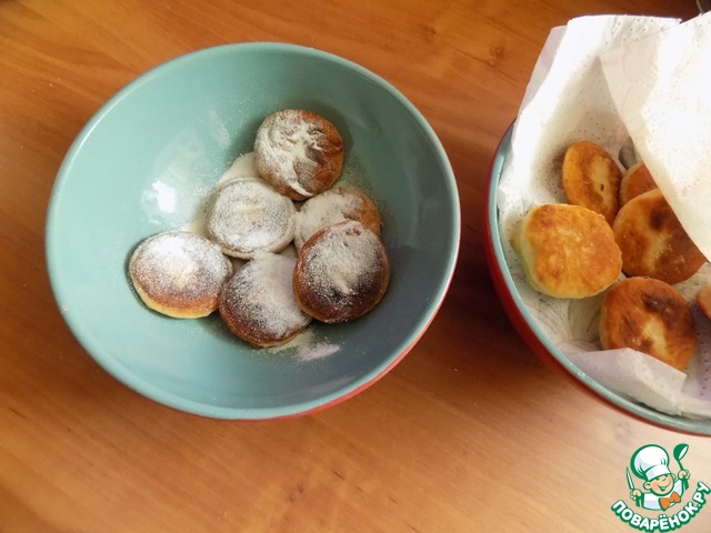 Сковороду ставим на огонь, очень сильно её греем с маслом и выкладываем мини-пышки. Огонь убавляем. Творожные пышки нужно жарить на небольшом огне, иначе они не прожарются внутри, а сверху подгорят. Жарим пышки с каждой стороны по минуте примерно.