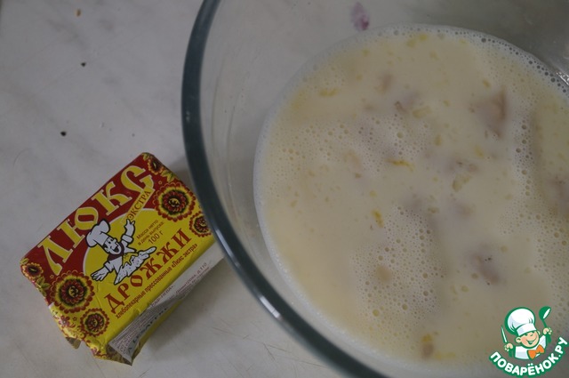Добавить дрожжи и немного подождать, буквально пару минут. Люблю использовать для сдобного теста именно свежие дрожжи, они быстро и легко поднимают тесто.