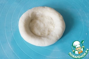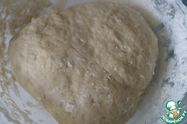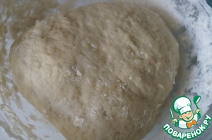 Постепенно всыпать всю муку и замесить мягкое, не липнущее к рукам, тесто. Сформировать из него шар и положить в чашу. Накрыть ее пищевой пленкой или полотенцем и поставить в теплое место, подходить на 1-1,5 часа.
