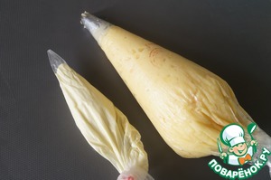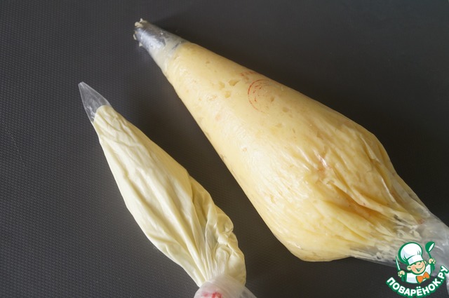 В чуть теплый курд добавить размягченное сливочное масло и взбить миксером. В кондитерский мешок с нужной насадкой выложить курд. Шоколад положить в кондитерский мешок и растопить в микроволновке в течении 50-60 секунд.