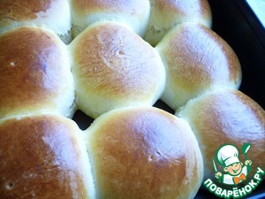 Булочки выложить швом вниз в форму (первая 24 Х 24, см, вторая 26х28 см), застеленную пекарской бумагой и смазанной маслом, на расстоянии друг от друга.