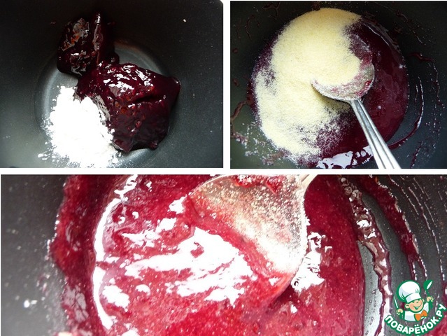 Снять с огня, вмешать манную крупу. Оставить, чтобы масса остыла и набухла манная крупа. -