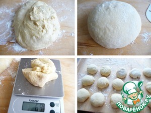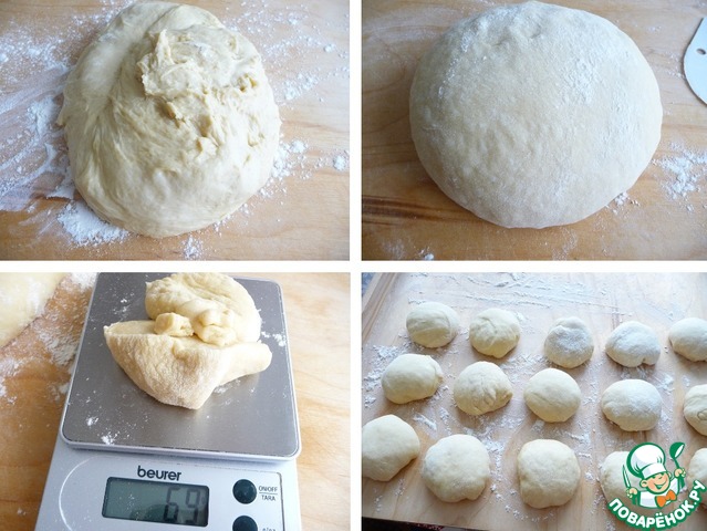 Заготовки булочек прокрутить на доске между руками, скруглить края. -