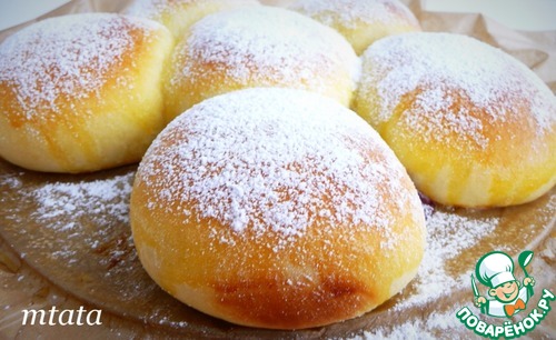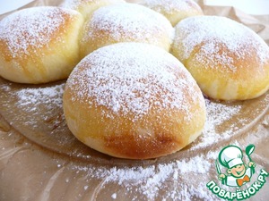 Теплые булочки присыпать сахарной пудрой. Сливочное масло в сочетании с сахарной пудрой придаст приятный аромат.