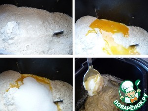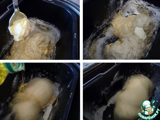 Во время замеса теста вводить мягкий маргарин частями, чтобы он хорошо вмешивался в тесто. -