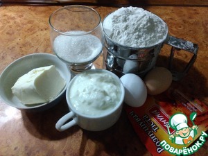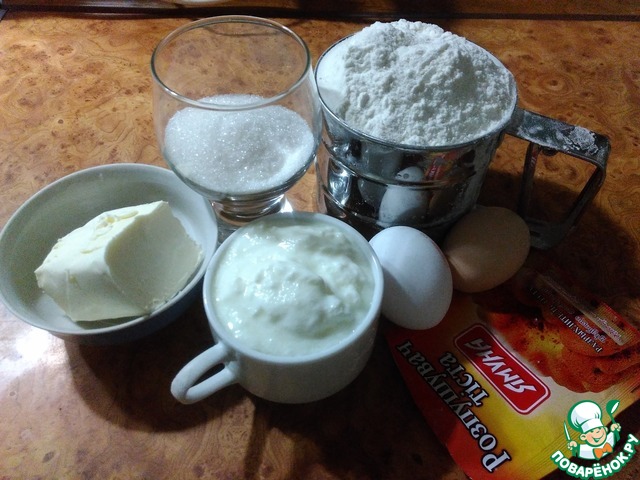 В заключение - мука с разрыхлителем, немного перемешать до однородности теста: масса более густая, чем на оладушки