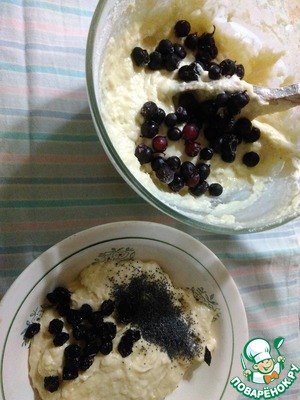 Муж у меня любит с черной смородиной, а я в этот раз добавила для себя еще вяленую вишню и мак -