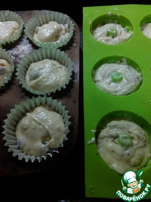 Формы для выпечки (у меня силиконовые) смазать растительным маслом без запаха или вложить одноразовые бумажные капсулы, заполнить тестом на 2/3