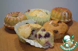 Рецепт из просторов интернета, вроде как, от Юлии Высоцкой. В оригинале маффины без добавок, я готовлю чаще с ягодами, поэтому для меня рецепт больше как базовый. предлагаю и вам снять пробу. Также рецепт подойдет молодым хозяюшкам, которые еще не обзавелись разными кухонными гаджетами; тем, кто ценит свое время или просто ленюшки подолгу готовить